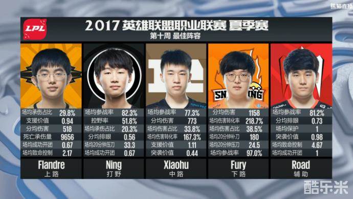 在今天的比赛结束之后,LPL官方也第一时间给出了每周最佳阵容。