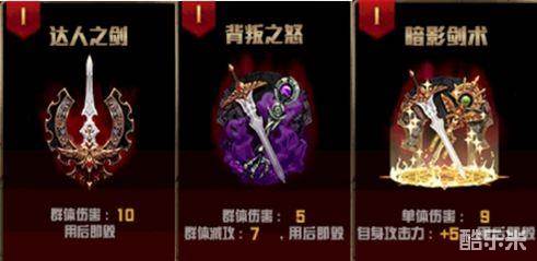 三张强无敌的牌,达人之剑配合加攻牌可以打出高额的伤害,且只需要1费非常灵活;背叛之怒无论是来配合加攻牌打伤害,又可以完美降低怪物攻击力,非常全面的一张牌;暗影剑术级可以加攻又有高额的单伤,配合群伤牌是强无敌的存在。这三张牌无脑选即可,选越多通关的越快。