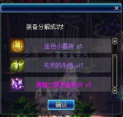 2、刷到别的职业换装可以不急着分解,丢到仓库里以防将来之需。毕竟分解一个才5个碎片,不急于这一时。