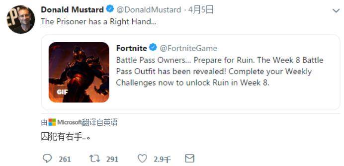 接着我们来看看喜欢改所在位置的创意总监Donald Mustard,他转发了堡垒之夜第八赛季的隐藏皮肤并说:禁锢之躯有左膀右臂。