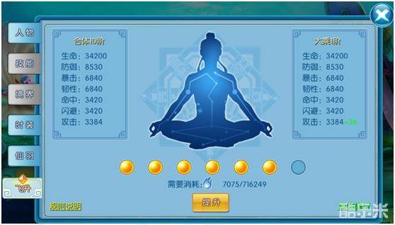 2. 点击修行系统界面中右下角的[前往飞升]链接