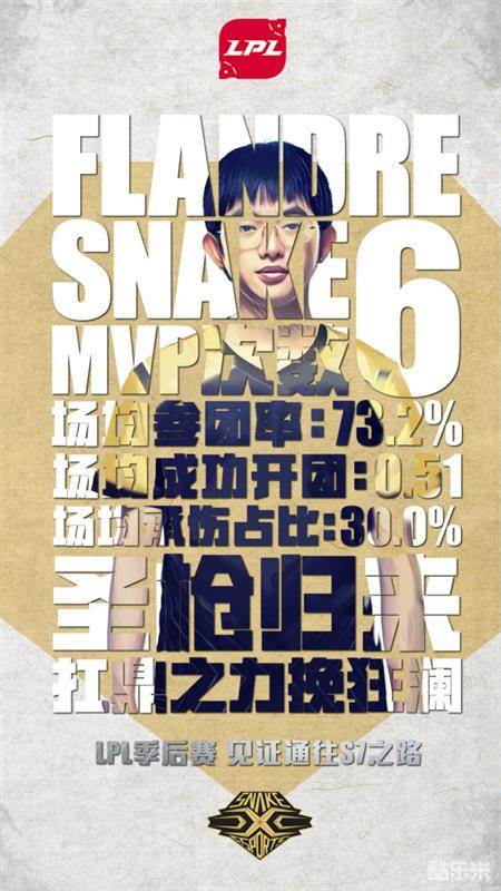 Snake能够在常规赛最后一场比赛最终锁定季后赛资格,相当程度上要感谢上单位“圣枪哥”的完美表现——在对阵IM的首局比赛中,Flandre以85.7%全队第一的参团率带队取胜,并斩获MVP,更将对手踢出季后赛资格争夺。事实上在整个常规赛阶段,Flandre都扮演着为Snake攻城拔寨的顶梁柱角色。而今历尽艰辛闯入季后赛,圣枪哥与他的队伍便绝不会轻易放过每一个对手。