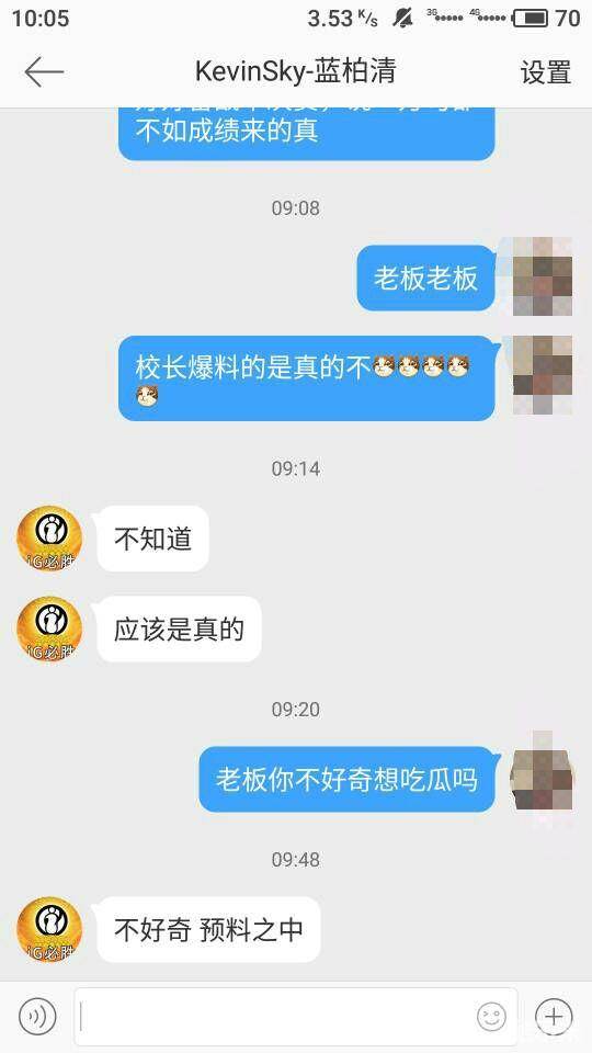 据论坛网友晒出了一张与JDG老板蓝柏清的私信对话截图表示,蓝柏清个人认为王校长的爆料是真的:“不好奇,预料之中”