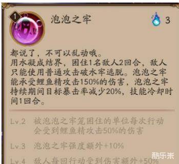 鲤鱼精作为辅助式神还是相当好用的,很多玩家没抽到一目,其实鲤鱼精也可以勉强代替一目连,3技能控制还能穿盾也是很强大。