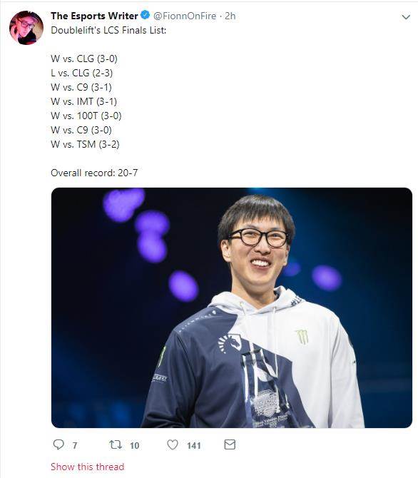 ps:Fionn出现笔误,第一个应该是对阵TSM(那时Doublelift还在CLG)