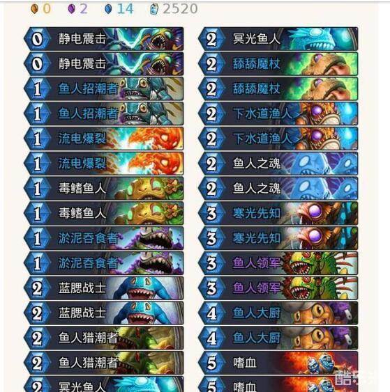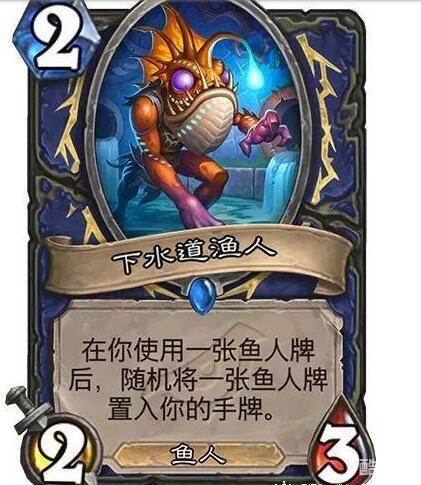 是紫卡因为没办法替代。鱼人体系很简单,核心的思路是通过铺场,站场给压力,最后用领军的BUFF或者嗜血来斩杀。整套卡组中核心的鱼人牌是鱼人领军和下水道渔人,我们要灵活使用