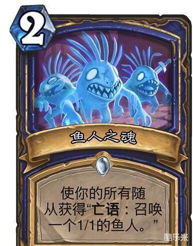 鱼人之魂的作用是帮助我们再增加一波场面厚度,可以保住场面的频率来配合嗜血斩杀,也可以通过1/1的鱼人配合诅咒教派领袖来过牌,总之容错率还是很高,是强化场面的好牌,可以用来防AOE。