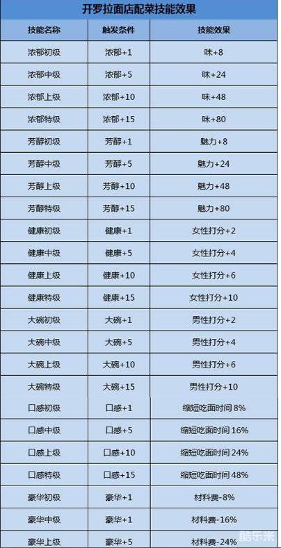 开罗拉面店游戏中配菜只有技能名称,没有详细的效果描述。来看看小编带来的开罗拉面店配菜技能效果一览。