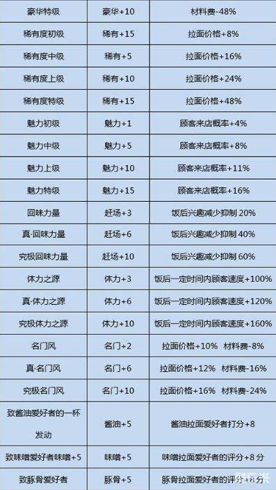开罗拉面店配菜技能效果一览