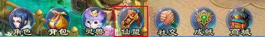 先点击游戏主界面左上方的角色头像,这时游戏主界面下方会弹出菜单栏,再点击菜单栏中的“仙盟”,在仙盟大厅界面,点击“仙盟守卫”图标进入。