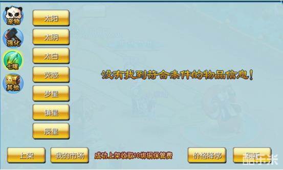 2、市场中的物品分为灵兽、强化、七曜、其他四大类,每一个大类下还分为各种小类。玩家可根据自己需要在对应类别下寻找。
