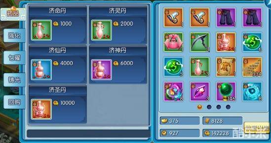 2、商店内出售的道具分为药品、强化石、七曜碎片、铸光卷轴。除药品可直接使用铜钱购买外,其他道具还需要消耗特殊道具才能购买,如消耗低级强化石、混沌碎片等。
