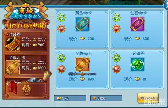 2、商城内分为元宝商城、VIP商城、礼金商城。只有VIP才能在VIP商城中购买物品。