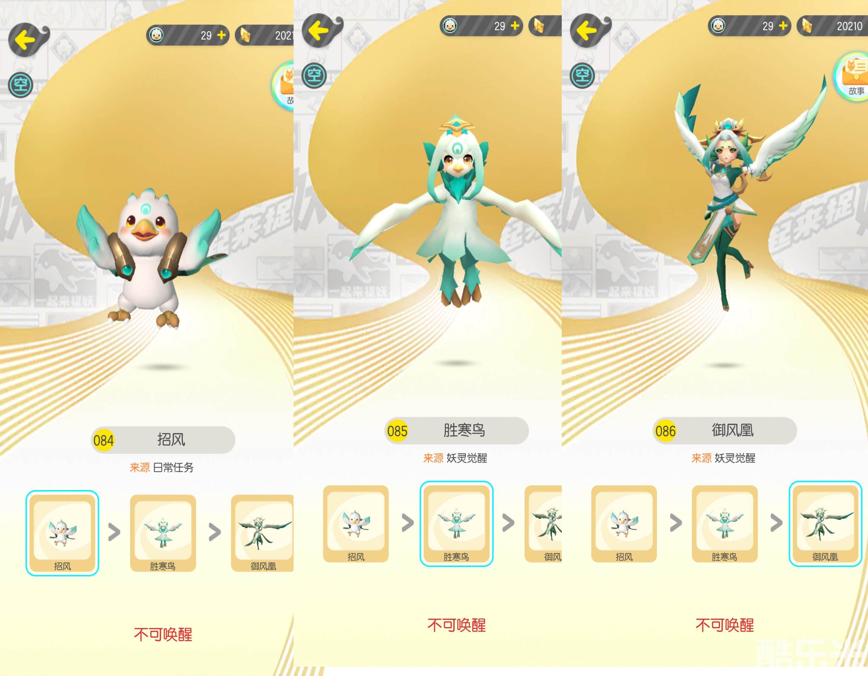 它一共有三阶觉醒形态,分别为招风、胜寒鸟、御凤凰。随着等级的提升,妖灵在各方面的能力数值也会有对应的提升。