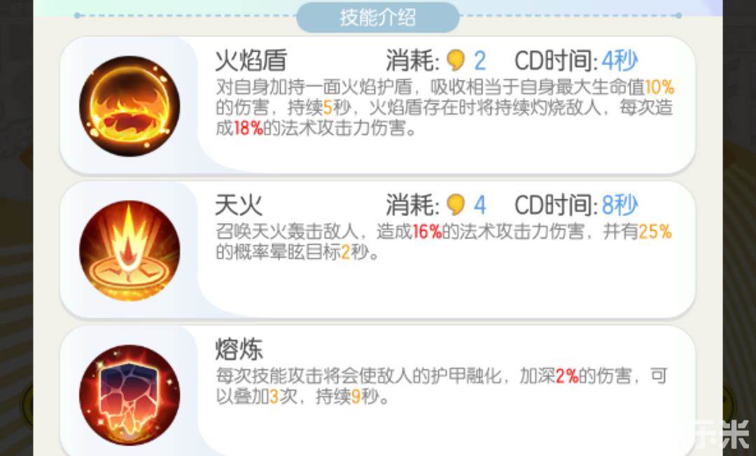 一技能:火焰盾,消耗2个元气豆,CD时间4秒。