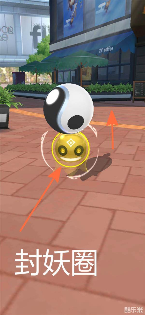 按住封妖灵珠时在妖灵身上出现一个封妖圈,投入时距离圈中心最近,捕捉成功几率越大。