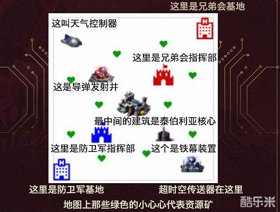 泰伯利亚战争是以联盟为单位的跨服GVG对战;两方阵营需各自派出最多50名联盟成员出战!系统会匹配2个战力相近的联盟进行对抗!所有人将来到一个全新的地图,地图大概是这样的(这是小编根据活动规则脑补的地图,具体还要以活动实际构图为准哦)