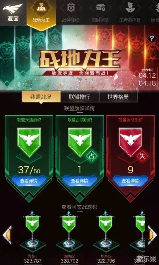 配合战地为王而出的“战神降临”活动,会根据活动期间,指挥官所参与的旗帜争夺而获取的战地积分情况,来获得积分奖励和个人排名奖励。