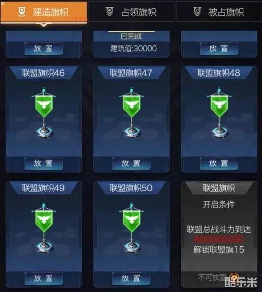 联盟旗帜有一定的数量限制,在达到相应要求后,可以解锁更多的旗帜,同时旗帜在建设时,必须符合两个条件之一,即与“联盟领地”或“已有的联盟旗帜领地”相连,另外联盟旗帜的放置也不可以在任何联盟堡垒或联盟旗帜的领地范围内哦~