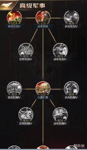 当然高级军事也有全新的科技,包括大厦扩建和战争军团。这样两个科技大厦扩建能够增加援兵上限,当你忘记开时空屏障的时候,很多联盟里的朋友想支援你,却发现你的援兵已经上限了,那么这个科技就能很好的帮助你了,每级大厦扩建能够增加10000援兵上限,满级10级能够增加10万援兵了,基本能够多支援一队列极限兵种了,让指挥官的安全感满满。