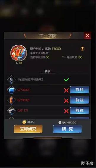 还有一个新科技就是军事提升、工业提升、后勤提升,这三个科技也是针对英雄实力的进一步提高,研究科技每个等级会提升对应芯片等级上限1级,满级能够提供5级芯片等级上限。