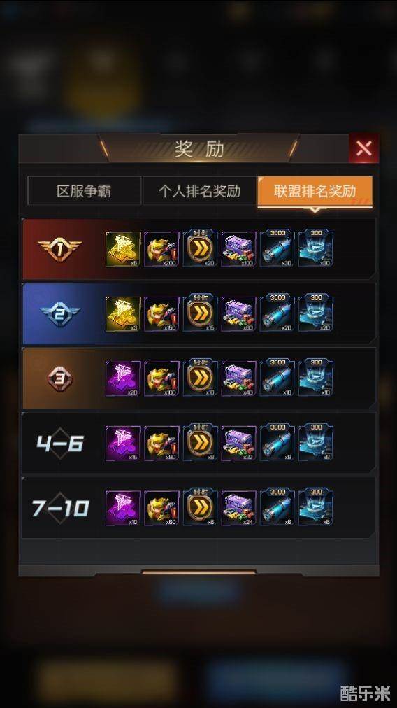 将会根据个人排名进行相应奖励的兑换,大致的奖励分为:荣誉值、联盟积分、加速1小时、物资箱(1-4级)、经验胶囊(中级、高级、特级)以及芯片强化器(中级、高级、特级)。