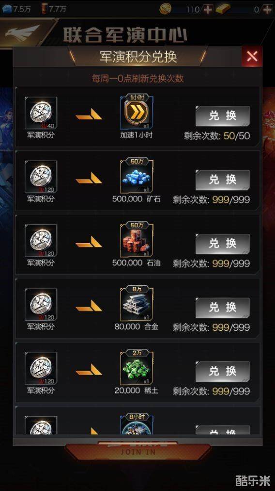 不同军演积分对应不同奖励,指挥官们可以按照实际积分进行奖励的兑换。