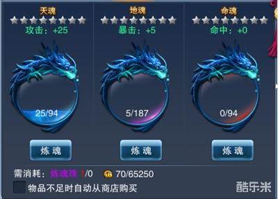2、玩家每次炼魂时,可选择炼制哪种魂魄。只需点击该魂魄下方的炼魂按钮即可对该魂魄炼魂。