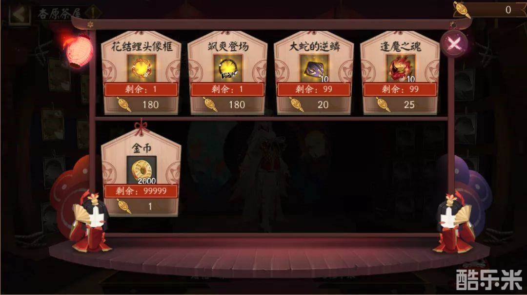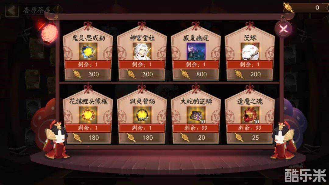 点击茶屋左侧的花牌架,大人可自选配置金色花牌的奖励。