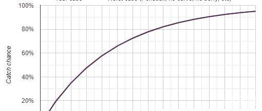 横坐标是丢球的次数,纵坐标是抓到的概率,意思就是虽然每次只有20%的概率,但是丢的多了,概率会不断逼近100%
