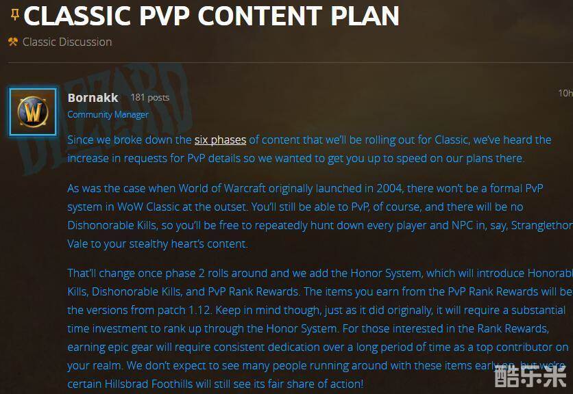 魔兽开发团队蓝贴 怀旧服的PVP更新计划