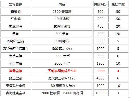 3、活动期间内可使用活动材料兑换各种神秘宝箱,每种宝箱都有兑换次数限制。