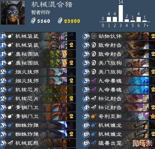 这套卡组之所以叫做混合猎,是因为它有多个制胜点,并且几乎没有完全劣势的对局,对任何卡组都有机会,也是我最为喜欢的一个卡组类型。对阵任何对局,我们都有着1费机械袋鼠,2费烟火技师buff,3费动物伙伴,或者机械巨熊的梦幻开局,迅速给予对手巨大压力,这种情况虽然少见,但是一旦打出胜率极高。