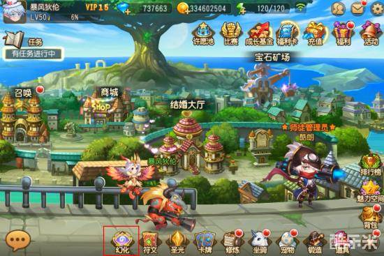 此次《弹弹岛2》新版推出的幻化玩法,出乎所有人的意料!它与之前的宠物、时装、武器系统没有什么关系,完全是一套全新的系统。这从幻化的进入方式就可见端倪。“幻化”按钮位于游戏主界面最左侧,与宠物、背包、锻造等截然分开。