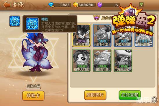 进入幻化界面,会看到所谓的幻化是指人物可以使用幻化皮肤卡,变成皮肤所代表的形象,并且赋予幻化形象的被动技能和属性。幻化的属性又叫做幻化力,随着幻化皮肤等级的提高而提高。幻化皮肤的形象可以覆盖时装、坐骑的装饰效果,只要拥有了相应的皮肤卡就可以做到七十二变,想变就变!