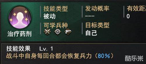 治疗药剂:每回合都能恢复兵力,绝对是降低战损的必备技能,治疗药剂的解锁需要消耗罗刹女春华,千万不要弄丢了喔