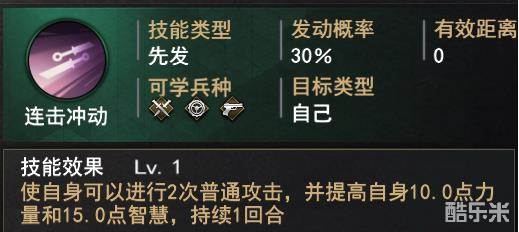 连击冲动:有概率使自身可以进行2次普攻,如果英雄自身的力量属性较高,同时还带有追击或溅射技能,那么带上这个技能绝对如虎添翼
