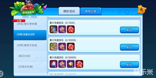 只要累计充值宝石达到相应的条件,就可以领取奖励啦~“雷暴兔”宝箱、小型金币包、暗淡的神器精魂、新手英雄礼盒、超乐宝箱、投掷血暴、S宠“鲨王肝柿”、闪电链、唤宠玉石、狂紫神印宝箱、辉煌的神器精魂、皮肤“屠龙狂者”、巅峰进化石、酋长喇叭等等等等,小编说的都喘不上气了,这么多好东西还不赶紧来兑换?!