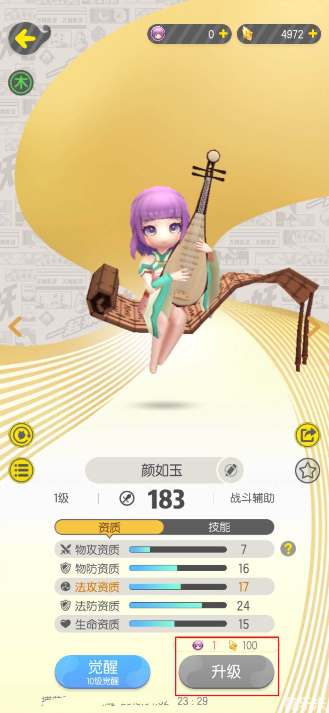 颜如玉的三个技能都可以升级,当技术越升越高时,技能的伤害值和恢复生命值的百分比会增加。在妖灵的主界面上的技能处,点击想要升级的技能,拥有技能书和达到级别限制就可以升级了,相应技能书需要通过训练师任务来获取。