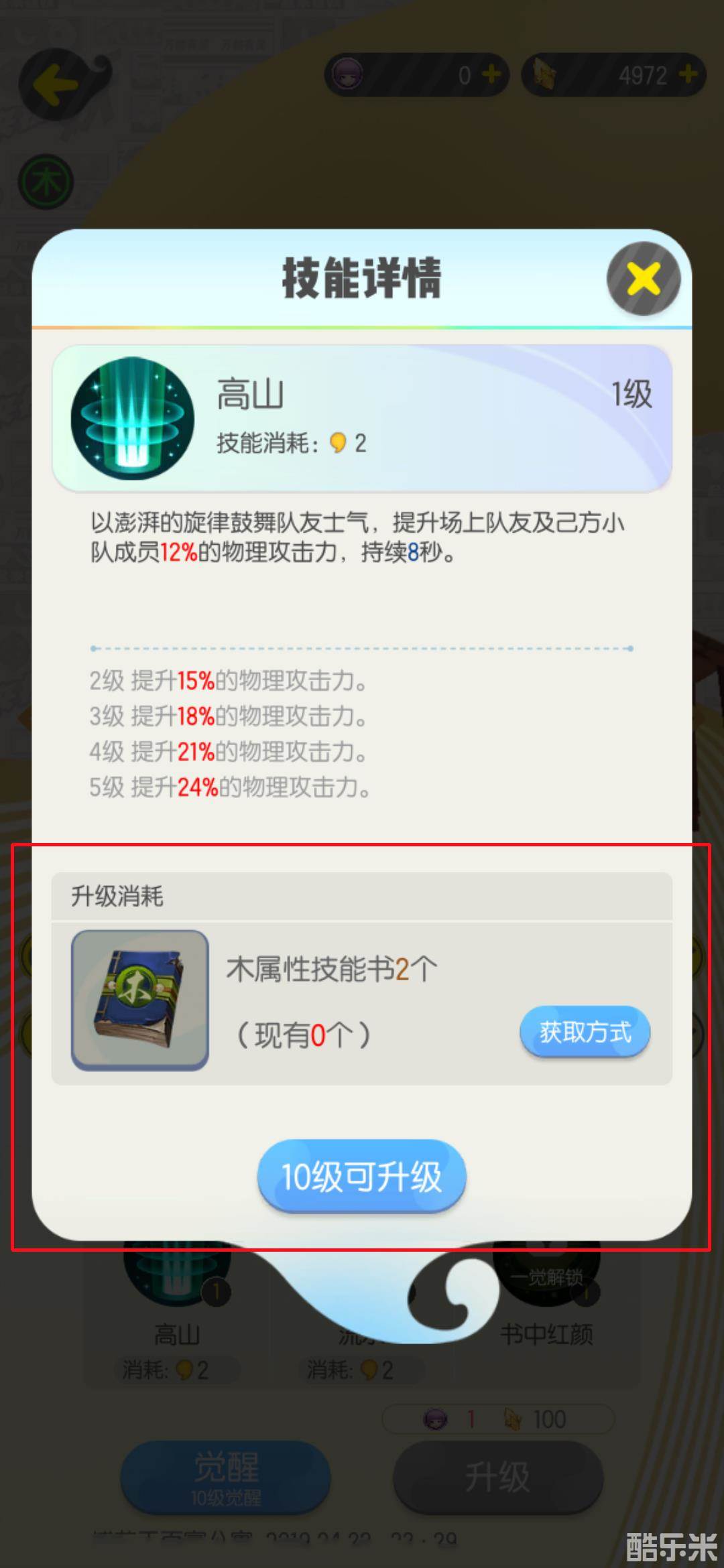 一阶:高山,消耗2个元气豆,CD时间8秒。