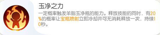 | 金角小妖的2技能宝瓶喷射有极高的输出,但消耗非常高,所以在战斗时,应该频繁使用灵钻来触发被动玉净之力,当被动生效后,就可以无消耗使用宝瓶喷射! |