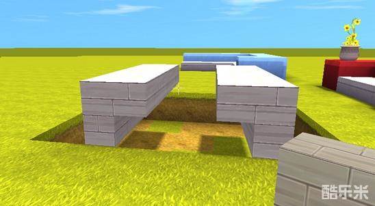 首先我们来倒放楼梯来做桌脚。在之前的教学中我发现很多小伙伴不会倒放,今天来教大家。大家可以先放两层任意方块,小编用了黄色羊毛块。