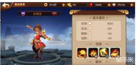 孙悟空属于刺客型的伙伴,虽然品质为16资质,不过个人感觉孙悟空实用性一般。一技能还是不错的,提升全体攻速移速并且持续6秒,能够提升全队输出能力。二技能范围伤害,不过伤害表现一般,虽然能够提升自身攻速,不过5%攻速3秒持续时间效果不怎么样。三技能限制了孙悟空的伙伴搭配,必须要搭配能够破甲的伙伴才行。四技能直线伤害,低伤害和低几率的昏迷效果都让自个技能显得比较鸡肋。