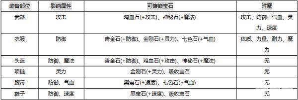 宝石:宝石是装备的一个强化系统,可以大大提升装备的属性,每件装备可以选择指定的几种宝石进行镶嵌,最多只能镶嵌2种,只能镶嵌(装备等级/10+1)级,其中每次镶嵌需要消耗宝石数量=2^镶嵌等级颗宝石。
