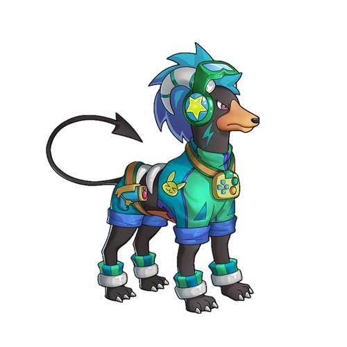黑鲁加类似于犬型宝可梦,不过进化后头上的角变得又大又弯。橙色的嘴吻突出,尖端是黑色的鼻子与两颗并不明显的外牙。