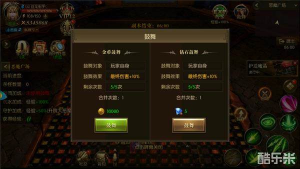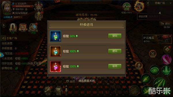 战斗过程中可以使用【金币】【钻石】来提升伤害,增加刷怪效率,使用【经验药水】来提升最终获得的经验收益;由于此玩法收益极高且花销性价比极高,建议尽可能最优购买;
