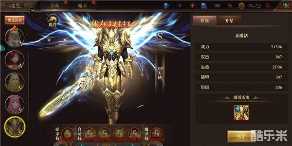 游戏里一共有六只不同的魔宠,分为A级到S级,每一只的形态都不一样,有的很炫酷,有的很可爱。不同宠物的属性加成也不一样。小编最喜欢的是这只酷酷的炽天使。