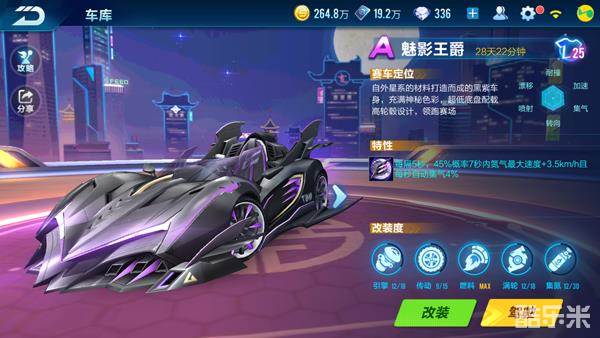 魅影王爵综合能力优秀,其中耐撞和转向非常突出,搭配实用的特性可以让你在赛道上快速甩开对手,是一辆非常值得大家入手的A级赛车。