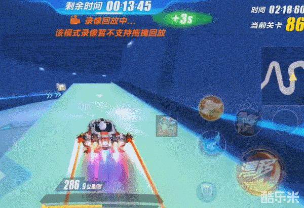 由于此处捷径较为狭窄,使用氮气通过则很容易掉出捷径,平跑通过又会浪费时间,因此在这里也推荐大家使用飞机。而且在这里可以利用飞机的转向不减速特性,先使用氮气,再使用飞机,可以获得更高的速度,保持高速通过捷径,为后续路程节约更多的时间。