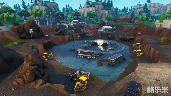 v8.40更新中堡垒之夜地图的最大变化是战利湖。在更新前,战利湖附近有一个挖掘工地,所有的挖掘/施工卡车都围着战利湖盘旋。在今天的更新中,挖掘团队将战利湖湖水抽干,发现了一个巨大的金属结构。